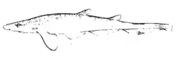 The longfin sawtail catshark (Galeus cadenati) is a rare, little-known species of catshark, part of the family Scyliorhinidae. Once thought to be a subspecies of the roughtail catshark (G. arae) along with the Antilles catshark (G. antillensis), it inhabits deep water off the Caribbean coasts of Panama and Colombia. This slim-bodied species has a marbled dorsal color pattern and a prominent crest of enlarged dermal denticles along the dorsal edge of its caudal fin. It can be distinguished from similar species by its relatively longer anal fin and small adult length of under 35 cm (14 in). The longfin sawtail catshark is oviparous.