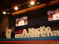 In 2012 several parties and individuals abandoned the front, dissatisfied with its political line and the control exercised by the UPG.[38][39] Encontro Irmandiño abandoned the bloc[40] and joined with Galician Workers' Front (Fronte Obreira Galega), the Galician People's Front (FPG), Movemento pola Base and other collectives to form Anova-Nationalist Brotherhood.[41] Anova obtained four seats in the 2012 Galician election as part of the Galician Left Alternative coalition. Anova is a pro-independence,[42][43] anticapitalist,[44] anti-globalization, republican and anti-imperialist organization.[45] Other groups that split were the more moderate social-democratic and autonomist Máis Galiza, Nationalist Left and the Galician Nationalist Party-Galicianist Party (PNG-PG). They formed Commitment to Galicia (CxG), a social-democratic and autonomist organization.[46] No CxG deputies were elected at the 2012 Galician election.