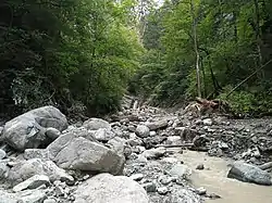 The Galina originates near the northeast of the Galinakopf summit,[1] near the Rossboden, 2,060 metres (6,760 ft) above sea level. With a length of about 5.80 km (3.60 mi) it is one of the shortest rivers of Vorarlberg. It flows into the Ill between Frastanz and Feldkirch.[2]