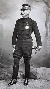 Galliffet or gallifet (Russian: галифе, romanized: galife) were a style of trousers worn as part of the military uniform of (for example) the Soviet Army. They were similar to riding breeches, but adapted to fit in jackboots. Russian dictionaries define "galife" as pants fitting the knees and below, to easily fit the sapogi (сапоги, Russian jackboots), and expanding from above the knees.[1]
