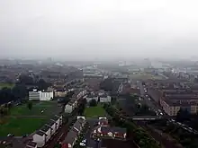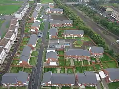 The majority of the current housing is on the north side of the main road, much of it comprising deck-access maisonettes constructed in the 1960s as a council housing scheme. However, the streets where they were built are much older, having been at the heart of a vibrant and densely populated industrial community in the East End that was largely swept away in a slum clearance program. In particular, Slatefield Street was once the location of a country house and then a brewery,[3][4] Campbellfield Street was also home to a mansion and later a large school,[5][6] and Rowchester Street was home to the carnival grounds, which moved to nearby Vinegarhill when they were replaced by a tram depot.[7]