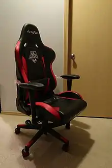A gaming chair is a type of chair marketed towards gamers.[1][2] They differ from most office chairs in having high backrest designed to support the upper back and shoulders.[3] They are also more customizable: the armrests, back, lumbar support and headrest can all be adjusted for comfort and efficiency.[3] However, there are criticisms of gaming chairs. For example, they tend to be designed and marketed primarily for aesthetics at the expense of having worse ergonomics than modern office chairs.[4]