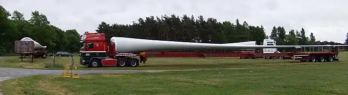After an intense competition involving 5 European consortium competitors, the team of Hamilton Standard and the Swedish shipyard Karlskronavarvet (now Saab Kockums) was awarded a contract to develop the WTS-3, a two-bladed, downwind, horizontal-axis wind turbine rated at 3 MW.[22] In 1983, Karlskronavarvet installed the WTS-3 in the town of Maglarp, Sweden.[23][24] The WTS-3, which was developed in cooperation with US based Hamilton Standard, also featured a soft steel tower that has become the standard for multi-MW wind turbines.[22]