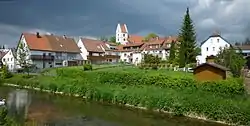 The well-known Helmet of Gammertingen and other rich grave goods from a number of burial grounds provide the information of an early settlement in the time of the Merovingian dynasty.[3] Gammertingen was first mentioned in 1101 in a document of the Kloster Allerheiligen, Schaffhausen. Gammertingen was first mentioned in 1311 as a city.[4] During the time of the Hohenzollern and later Prussian times, Gammertingen was the seat of Oberamt, district court, forestry department and land registry.