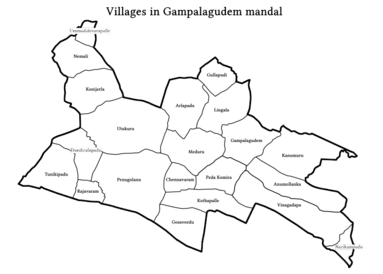 Gampalagudem mandal is one of the 20 mandals in NTR district of the state of Andhra Pradesh in India. It is under the administration of Tiruvuru revenue division and the headquarters are located at Gampalagudem town.[2][3] The mandal is bounded by Tiruvuru, A. Konduru mandals of NTR (formerly Krishna) district in Andhra Pradesh and Madhira, Yerrupalem mandals in Khammam district of Telangana state.[4]