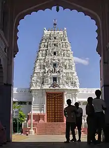 The Great prefix was the result of the Great firm theory applied to the Marwari family businesses like the Geat Ganeriwala firm, Great Tarachand (promoted by Neotia's, patriarchs of Ambuja Cement Ltd) and Great Sevaram Ramnikhdas[3][4][5] Neotia's became leading agents of Burma Shell before forming Ambuja Cements Ltd. Ganeriwala family trusts consist of temples, schools, wells and dharmashalas since the 1800s. The Sitaram Bagh temple[6][7] at Hyderabad was built by Seth Puranmal Ganeriwala, in 1830s who had also built the noted Rangji temple in Pushkar in 1850.[8] Mody University of Laxhmangarh is built on land donated by the Ganeriwala family. Sitaram Bagh temple is spread over 25 acres and classified as a heritage property. Shree Raghunathji Mandir in Nashik was donated by mother of Seth Ram Dutt Ganeriwala over a 120-acre land. Geeta Vatika also known as Geeta Garden in Gorkahpur was built on the land donated by Seth Jaydayal Ganeriwala. Haveli's belonging to the descendants include ones in Fatehpur, Mukundgarh, Lakshmangarh, Ratnagarh.The Char Chawk Ki Haveli is the largest haveli of Shekhawati, owned by several branches of the Ganeriwala family previously and now managed and lead by Shri Girdharilalji Ganeriwala. Other temples near Jaipur include ones in Ratnagarth, Mukundgarh, Fatehpur, Sirsa, Ganeri etc.