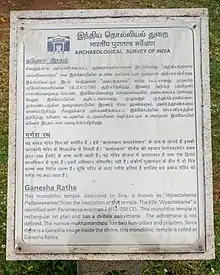 - 1 2 "Ganesha ratha, Mamallapuram". Online Gallery of British Library. Retrieved 23 October 2012.