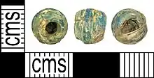 Glass processing was among the earliest activities that took place. Thousands of glass beads have been found in and around Gao, dating from the eighth to the fourteenth century CE.[6] Their shapes include cylinder, oblate, sphere, tube, ellipsoid, bicone, and disc, and colors range from red to blue to yellow. Analyzing the composition of the beads can indicate their origins; several compositional groupings have been recognized, included plant-ash soda-lime-silica glass, mineral soda-lime-silica glass, high-lime high-alumina glass, mineral soda-high alumina glass, plant ash soda-high alumina glass and a high lead composition glass. The dating of these different composites indicates that the source of the glass used to make the beads changed sometime during the end of the tenth century. Earlier glasses were probably produced in Iraq and Baghdad, and later glasses were produced in Egypt.[6]