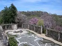 Dumbarton Oaks in Washington DC, designed by Beatrix Farrand from 1922 onwards, is a larger garden (27 acres) laid out "as a series of outdoor rooms".[19] Like Sissinghurst, the garden of Ninfa in Central Italy partly uses ruins to structure garden spaces, in this case those of an entire village.[20]