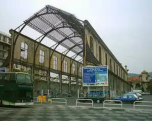 The Gare du Sud is a food court in the Libération quarter of the city of Nice in south-east France. It has been constructed within the buildings of the former railway station that bore the same name. The station was the terminus of the metre gauge railway of the Chemins de Fer de Provence rail company which links Nice to Digne-les-Bains in the department of Alpes-de-Haute-Provence. The line, known as the Train des Pignes because it follows a scenic route through the mountains, has been served by a nearby replacement Nice terminus station,[1] the Gare de Nice CP station, since the original station was closed in December 1991.[2] The Gare du Sud site then remained derelict until 2013, when the station building was renovated and converted into a library.[3]
