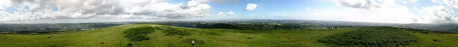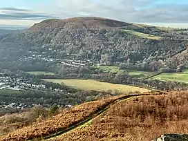 Garth Hill (usually called The Garth, or Garth Mountain; Welsh: Mynydd y Garth) is a hill located in between the communities of Llantwit Fardre and Pentyrch in Wales. The Garth can be seen from nearly the whole of the city of Cardiff and the Taff Valley, and on a sunny, clear day as far as Weston-super-Mare across the Bristol Channel in southwest England. It lies adjacent to the Taff Vale with the village of Pentyrch on one side and looks down onto the small villages of Gwaelod-y-Garth and Taff's Well. The Garth has a number of tumuli on its top.[1] These are burial sites dating from the early to middle Bronze Age.[2]