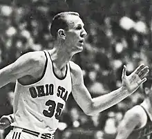 He played collegiately for the Ohio State University. Was National Player of the Year[5] and winner of the Adolph Rupp Trophy in 1964. Teammates included Jerry Lucas, John Havlicek, Bobby Knight, Mel Nowell, and Don DeVoe. Averaged 28.0 points and 13.0 rebounds as a junior, after replacing Jerry Lucas. Averaged 30.6 points and 13.4 rebounds as a senior. Had six consecutive 40 point games his senior year,[6] including a school record 49 against Illinois (2/10/64).[7]