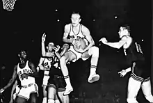 During the streak, Bradds averaged 44.3 points and scored 46% of Ohio State's points. It ended with Bradds scoring 30 points against Iowa. He also was a member of the 1963 Pan American Games, winning a gold medal.[8] Pan Am team included Willis Reed and Lucious Jackson. Was captain of the team in 1964. His #35 has been retired at Ohio State (1/27/2001).[9] Is a member of their Hall of Fame (inducted in 1978).[10] Also, member of the Ohio Basketball Hall of Fame.[11] Scored 15 points in the National Title game in 1962, leading team. Jerry Lucas once claimed that Bradds was the best player he played against all season "in practice". His 735 points in 1964 are second highest season total in school's history.[12] Was Ohio States MVP in 1963 and 1964.[13] Was Big Ten MVP in 1963 and 1964. Was All-American in 1963 and 1964.[14] Ohio State had a 62–14 record while he was there. He averaged 20.7 points and 9.5 rebounds while shooting .535 percent from the field in 74 games.[15] His 1,530 points and 706 rebounds still rank in the school's top ten of all time.
