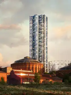 Gasklockan is a planned skyscraper, located in Norra Djurgårdsstaden district of Stockholm, Sweden. Originally scheduled to open in 2018–2019, the tower has been delayed indefinitely and its original height of 140 m (460 ft) has been revised to 110 m (360 ft) and 28 floors. The complex is designed by the Swiss architecture firm Herzog & de Meuron, commissioned by the Swedish developer Oscar Properties, and would contain approximately 320 residential units. Ground breaking was planned first quarter 2016.[1][2][3]