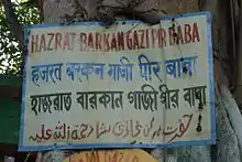Rani Rasmani, who created the Dakshineswar Kali Temple in Kolkata in 1847, saw Gazi Pir in a dream. In this dream he instructed her to construct a shrine for him under a peepal tree which is located outside what is now the riverside gate of Belur Math, which was built in the early 20th century. Ramakrishna Paramahansa used to offer "sinni" at this memorial.[3]