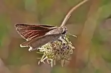 Gegenes pumilio, the pigmy skipper or dark Hottentot, is a butterfly of the family Hesperiidae. It is found from the coasts of the Mediterranean Sea through Anatolia to the Himalaya and south in the whole of Africa.