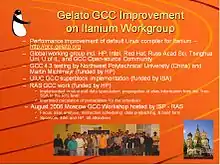 - Gelato GCC on Itanium Workgroup, a group of members and sponsors of the Gelato Federation and the GCC) community interested in improving GCC on Itanium processors.