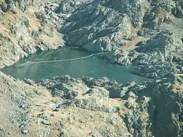 View from Malgina Devil's Lace of Malgina Lake (bottom) and Gelt Lake (top)
