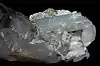 Quartz | Various types of quartz found are diamond, window, quartz on prehnite, and faden. Image shows translucent light sea-foam green prehnite with quartz crystals. | [3] |