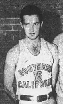 Eugene Rock (November 4, 1921 – October 31, 2002) was an American professional basketball player who played in the Professional Basketball League of America (PBLA) and the Basketball Association of America (BAA) during the 1947–48 season.[1][2] A native of Huntington Park, California, Rock attended Huntington Park High School before enrolling at the University of Southern California to play basketball.[1] While at USC, Rock earned varsity letters in 1942, 1943 and 1947.[3] Like many male college athletes during his day, Rock served in the military for two years before finishing college; he attained the rank of Captain in the Marine Corps.[3] Rock led the Trojans in scoring during 1942–43 (12.6 points per game) and again in 1946–47 (11.1 ppg).[3] During the former season, USC finished with a then-school record 23–5 mark en route to winning the Pacific Coast League Southern Division title.[3] Rock was also a teammate of future College Basketball Hall of Fame coaches Alex Hannum and Tex Winter.