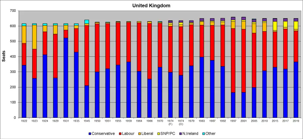 This is an overview of United Kingdom general election results since 1922. The 1922 election was the first election in the new United Kingdom of Great Britain and Northern Ireland, after the creation of the Irish Free State removed Southern Ireland from the UK.