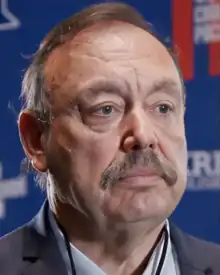 Gennady Vladimirovich Gudkov (Russian: Генна́дий Влади́мирович Гудко́в; born 15 August 1956)[1] is a Russian politician and businessman. The Moscow Times described him in 2012 as "one of parliament's most vocal and charismatic critics" of President Vladimir Putin.[2]