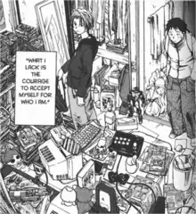 Genshiken follows the lives of a group of college students drawn together by their shared hobbies, and the trials and adventures associated with being otaku. The story begins with the introduction of Kanji Sasahara, a shy, confidence-lacking freshman who on club day at university, decides to join a club he would actually enjoy, Genshiken. Over his four years at Shiiou University, Sasahara comes to accept himself for who he is and loses the inhibitions and guilt he once felt and associated with otaku culture, becoming an enthusiastic club member, and for a time, a capable club president. As the story of Genshiken progresses, focus is also placed on Saki Kasukabe, a determined non-otaku who initially struggles to drag her boyfriend Kousaka out of the club, and Chika Ogiue, a self-professed otaku-hater who feels a deep-seated shame and self-loathing toward her own interests and hobbies.