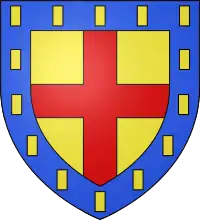 ![]() Arms of Geoffrey de Valognes.Or, a cross Gules within a border Azure billette of the first. | |