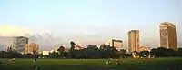 Central Kolkata hosts the central business district. It contains B. B. D. Bagh, formerly known as Dalhousie Square, and the Esplanade on its east; Strand Road is on its west.[14] The West Bengal Secretariat, General Post Office, Reserve Bank of India, High Court, Lalbazar Police Headquarters, and several other government and private offices are located there. Another business hub is the area south of Park Street, which comprises thoroughfares such as Chowringhee, Camac Street, Wood Street, Loudon Street, Shakespeare Sarani and A. J. C. Bose Road.[15] The Maidan is a large open field in the heart of the city that has been called the "lungs of Kolkata"[16] and accommodates sporting events and public meetings.[17] The Victoria Memorial and Kolkata Race Course are located at the southern end of the Maidan. Other important areas of Central Kolkata are Park Circus, Sealdah, Beliaghata, College Street, Burrabazar, Bowbazar, Taltala, Janbazar, Entally, Chandni Chowk, Lalbazar, Chowringhee, Dharmatala, Rabindra Sadan, Tiretti Bazaar, Bow Barracks, Babughat, Princep Ghat and Hastings. Another important park is Millennium Park on Strand Road, beside the Hooghly River. Fort William, on the western part of the city (besides Maidan), houses the headquarters of the Eastern Command of the Indian Army.[18]
