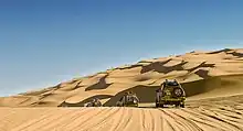 The sandy soils in the semi-arid areas south of the desert in North Kurdufan and North Darfur support vegetation used for grazing.[4] In the southern part of these states and the West Darfur and South Darfur are the so-called qoz sands.[4] The qoz sands are the principal area from which gum arabic is obtained through tapping of Acacia senegal (known locally as hashab). This tree grows readily in the region, and cultivators occasionally plant hashab trees when land is returned to fallow.[4] Though livestock raising is this area's major activity, a significant amount of crop cultivation, mainly of pearl millet, also occurs.[4] Peanuts and sesame are grown as cash crops.[4]