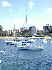 To the west of Flagstaff Point is Belmore Basin and Brighton Beach. Belmore Basin is the man-made section of Wollongong Harbour and was built using convict labour and is a heritage site with plaques along a history walk. There are two eastern breakwaters, a small stubby one of cement topped stone for the old lighthouse, and a large artificial boulder one with a light at the end for aiding ships in fog. At the portside is the fish market and a number of restaurants. Along the harbour dock are several charter vessels and private fishing boats. In the main harbour are private yachts and recreational vessels. This is to the west. Brighton Beach has recently been heavily eroded by the sea and is very thin. It stretches from the Lions Park playgrounds to the east to the western breakwater to the west. This is owned by the department of lands and used by photographers. From here the coastal cliff runs to North Beach, passing the baths and indoor seapools. Along here the Wollongong to Thirroul Bike Track or Heartcare Walk runs, this section is the Peace Mile section and runs to North Beach. Atop the cliffs, the edge of Smiths Hill mass, is another path and Cliff Drive. Settlement goes up to this road. The cliffs and grass/bushland about them are managed by bushcare groups and include native and invasive weed species. Lantana and Bitou Bush are prevalent, as well as Moreton Bay Figs and Acacias. North of this is North Beach at the end of the cliff. This popular surfing spot is used for competitions and private recreation, though has been damaged by erosion in the June 2007 windgusts.