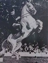 In 1939, Wahl joined the cavalry of the Wehrmacht, where he was under the command of Hans-Joachim Köhler from Verden. Köhler, who later became known worldwide as an expert in the field of horse training, organised a dressage competition for his troops to improve their morale. Held only 20 km behind the front lines, Wahl showed himself to be the best of the riders present. Alois Podhajsky happened to attend this competition, and in 1940, Podhajsky recruited Wahl to the Spanish Riding School.[1] Because Wahl possessed extraordinary talent and feeling for horses he advanced quickly at the school and within a very short time participated in the School's public performances. From 1938 until 1944 he served as a Rider (Bereiter) at the School.[2]
