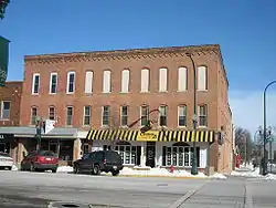 The George's Block, once known as the James Block, is a 19th-century structure located in Sycamore, Illinois, along Illinois Route 64 (State Street) as it passes through the DeKalb County seat. The Block is part of the Sycamore Historic District and as such is listed on the National Register of Historic Places. The district joined the Register in May 1978. The building dates from 1857 when it was owned by Daniel P. James but by the 1860s the building has become known as George's Block.[2]