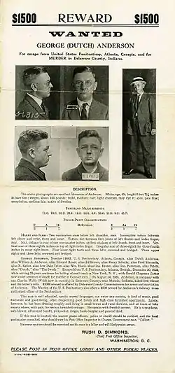 The three men eluded identification for months. They were eventually arrested by United States Postal Inspectors William Doran, Jim Doyle and William Cochraine on July 3, 1922, after Chapman attempted to sell Argentine gold notes (stolen during the Leonard Street mail robbery) to an undercover Postal Inspector posing as a stock broker.[3] Anderson and Chapman were both sentenced to 25 years at the Atlanta Federal Prison. Anderson escaped from the Atlanta prison on December 30, 1923, six months after Chapman's more dramatic escape from the same facility. They were believed to have teamed up again on several robberies.