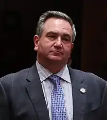 George M. Borrello (born May 27, 1967) is an American businessman and politician. He is currently a New York State Senator representing District 57 since 2019. Previously, he served as County Executive for Chautauqua County, New York from 2018 to 2019.[1] He first entered politics when he served as a Chautauqua County Legislator from 2010 to 2017. In 2019, he ran for New York State Senate for District 57 against Austin Morgan to fill the vacancy left by the resignation of Catharine Young.[2] On November 5, 2019, he defeated Morgan with 67.29% of the vote.[3][4] On November 26, 2019, he took office as State Senator.[5]