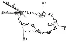 Hoste took part the night assault on the fortress of Bergen-op-Zoom on 8 March, when he led the third column (column B, pictured right) of about one thousand guards under Colonel William, Lord Proby, into the fortress.[2][7] The object was to take the garrison by surprise, and Hoste's column found no difficulty in escalading and entering at the point designated for them, but by dawn the assaulting British columns were forced to withdraw due to a series of mistakes despite nearly taking the place.[2][7] Hoste was mentioned in despatches from Graham for this action, and was brevetted major.[2]