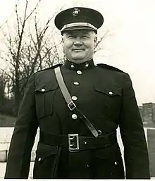 Unemployed, Chinn turned to his old friend, at the time governor of Kentucky, Happy Chandler. He served as a tour guide, and Sergeant at Arms for the Kentucky State Legislature. He got to know the capitol and its workings well enough that some thought he should run for governor.[10] Chinn later served as the bodyguard for Chandler and Jack Dempsey when he spent time in Kentucky.[11] In 1939, he took a job as a weapons consultant to the army.[10] Eager to serve in the war, Chinn demanded to Chandler that he be allowed to join the Marines. He objected, saying "You're over forty years old, and you weigh 330 pounds! You'll get in the way and you’ll get killed, and you’ll get other people killed, too. Go home!" Eventually, Chandler relented.[11] He was 118 pounds over the weight limit, and ten years over the age limit.[12]