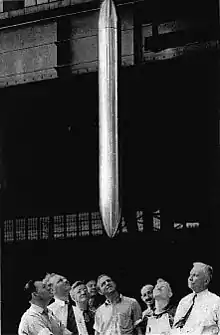 ![]() G.E. Pendray with rocket fueling device (1932) | |