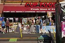 On August 3, 2020,[54] the reopening of the Cup Foods convenience store, from which a 9-1-1 call by an employee led to the encounter between Floyd and Minneapolis police, generated controversy. The Cup Foods grocery store, owned by a Palestinian-American family, had been a fixture in the Powderhorn neighborhood for three decades. The area around it had also been the location of violent crime, illicit drug dealing, loitering, and undercover police surveillance since the 1990s.[55] Floyd's murder led to further scrutiny of the store and its relationship with the Minneapolis police and its off-duty police officers who were known to provide paid security services. When it reopened, some protesters demanded that the store remain closed for continued mourning and confronted store owners who vowed to keep the store open anyway.[56][55] Among public conversation about how to evolve the street intersection space into a permanent memorial, some activists circulated petitions to permanently close the store.[54]