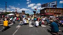 Crowds gathered later in the afternoon on May 25 for planned events, memorials, and celebrations.[102] Some residents near the intersection expressed their desire for Meet on the Streets, the activist group holding the square, to end the occupied protest and for barricades to be removed. In their view, the occupied protest had unintended consequences such as violence and disruption of business activity that harmed Black residents.[103] Volunteer activists said that they intended for the square to remain a "symbol for continued protests for justice" despite whatever the future plans for the street intersection that may re-open it to street traffic.[104]