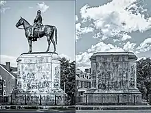 ![]() Black Lives Matter protesters by the graffitied Robert E. Lee Monument on May 31, 2020. | |||
