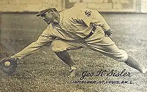 George Harold Sisler (March 24, 1893 – March 26, 1973), nicknamed "Gorgeous George", was an American professional baseball first baseman and player-manager. From 1915 through 1930, he played in Major League Baseball (MLB) for the St. Louis Browns, Washington Senators, and Boston Braves. He managed the Browns from 1924 through 1926.