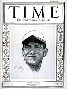 George Harold Sisler was born on March 24, 1893, in the unincorporated hamlet of Manchester (now part of the city of New Franklin, a suburb of Akron), Ohio.[1][2] His parents, Cassius Clay and Mary (née Whipple) Sisler, had been married after meeting at Hiram College, which they both graduated from. Both worked as schoolteachers at one point, though by the time George was born, Cassius was supervising a nearby coal mine.[3] Manchester did not have a high school; thus, when George turned 14, he moved to Akron to live with his older brother Efbert so that he could attend school there.[4] Sisler played baseball, basketball, and football in high school, but baseball was his main focus.[5] Because of his good looks, the local newspapers began referring to him as "Gorgeous George".[6] During George's senior year, Efbert died of tuberculosis, but George was able to move in with a local family and finish school.[7][8]