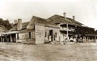 In 1866, George Dutton and his wife settled in Jolon, California. He came with his Civil War buddy, Captain Thomas T. Tidball.[3] The Duttons were founding members of the St. Luke's Church Episcopal in Jolon. Dutton was one of the early settlers that took the Jolon land believing it was part of the public domain provided by the United States government. Faxon Atherton said that the settlers were squatting on his land and sent notice to evict them. The hotel changed owners several times before 1876, when Henry Clay Dodge, the brother of Dutton's wife, sold the land to Dutton and Captain Thomas T. Tidball for $1,000 and 100 acres. Dutton added a second adobe story, a merchandise store, saloon post office, and stagecoach stop, which started between Lowe's Station and Pleyto in Monterey County, California.[7][1] Dutton's partnership with Captain Thomas T. Tidball was later dissolved and Tidball opened his own store and hotel called the Tidball Store.[8]