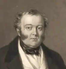 In 1827, his great-uncle Matthew Botrill fell ill and Hudson attended at his bedside. In thanks for this, the old man made a will leaving him his fortune of £30,000 (equivalent to £2,763,079 in 2021).[3] In later years when exiled in France, Hudson acknowledged "it was the very worst thing that could have happened to me. It let me into the railways and all my misfortunes since".[4] Hudson became a prominent member of the York Board of Health and when cholera visited the city in 1832 Hudson distinguished himself as a spirited public servant visiting the sick and reporting on their welfare".[5]