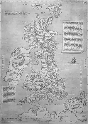 - ↑ Shirley, R.W. (1991). Early Printed Maps of the British Isles, 1477–1650 (2nd ed.). East Grinstead: Antique Atlas. pp. 20–22. ISBN 0951491423.