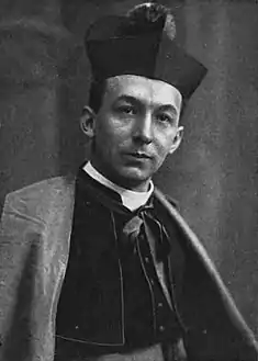 He received his early education at the parochial school of St. Nicholas Kirche. He attended La Salle Academy and Manhattan College, where he befriended Patrick Joseph Hayes (a future cardinal and Archbishop of New York).[4] He graduated from Manhattan in 1889 with high honors. Mundelein also studied at St. Vincent Seminary in Latrobe, Pennsylvania, and the Pontifical Urbaniana University in Rome, where he was ordained to the priesthood by Bishop Charles Edward McDonnell on June 8, 1895.[5]