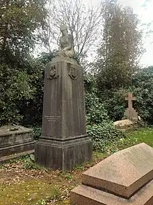 Parbury was appointed Deputy Lieutenant of the Tower Hamlets on 4 September 1858.,[9] and was a Justice of the Peace for the counties of Surrey and Middlesex.[10] He died on 27 January 1881 at the family home: Thornbury House, Caterham in Surrey, and was buried in the family vault at Kensal Green Cemetery.