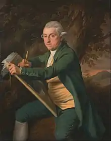 George Robertson, born in London about 1748, was son of a wine merchant, and received his education from a Mr. Rolfe in Red Lion Street, Clerkenwell. He studied art at Shipley's school, and was noted there for his skill in drawing horses, for which he received a premium from the Society of Arts in 1761. He afterwards went to Italy, and studied in Rome. He was patronised by William Beckford of Somerley Hall, Suffolk, with whom Robertson went to Jamaica, where Beckford had a large property. Robertson drew several views of this property in Jamaica, which on his return were finely engraved by D. Lerpinière, T. Vivares, and J. Mason, and published by John Boydell. He also exhibited views of Jamaica and other landscapes at the Incorporated Society of Artists' exhibitions, acting as vice-president of the society for some years. He obtained employment in London as a drawing-master, notably at a ladies' boarding school in Queen Square, Bloomsbury. He inherited a small fortune from an uncle and a house in Newington Butts, where he died on 26 September 1788, aged about 40.[1]