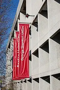 The George Sherman Union (GSU) is the student union building at Boston University and Boston University Academy. The Brutalist-styled building opened in Spring 1963.[1] When it opened, the Union had a 10-lane bowling alley in its basement.[2] The building is named for the Boston industrialist, philanthropist, and Boston University benefactor. The Union was modeled after similar student centers in Midwestern universities.